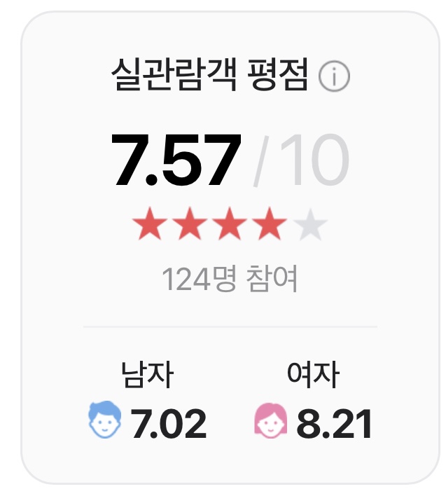 실관람객 평점 7.84를 기록하며 실제로 영화를 본 관객들에게는 호평을 받았지만, 누적 관객수는 165,974명에 그쳤다. 네이버 평점에서는 실관람객 평점은 높은 편이지만 네티즌 평점은 낮은 편이라는 상반된 반응을 보였다.