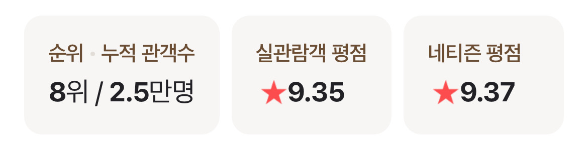 | 🎬영화 리뷰 《좀비딸》 : 조정석이 그려낸 딸바보 아빠의 감동 코미디 (한줄평, 후기, 쿠키, 평점) (6) | 2025.08.03 |