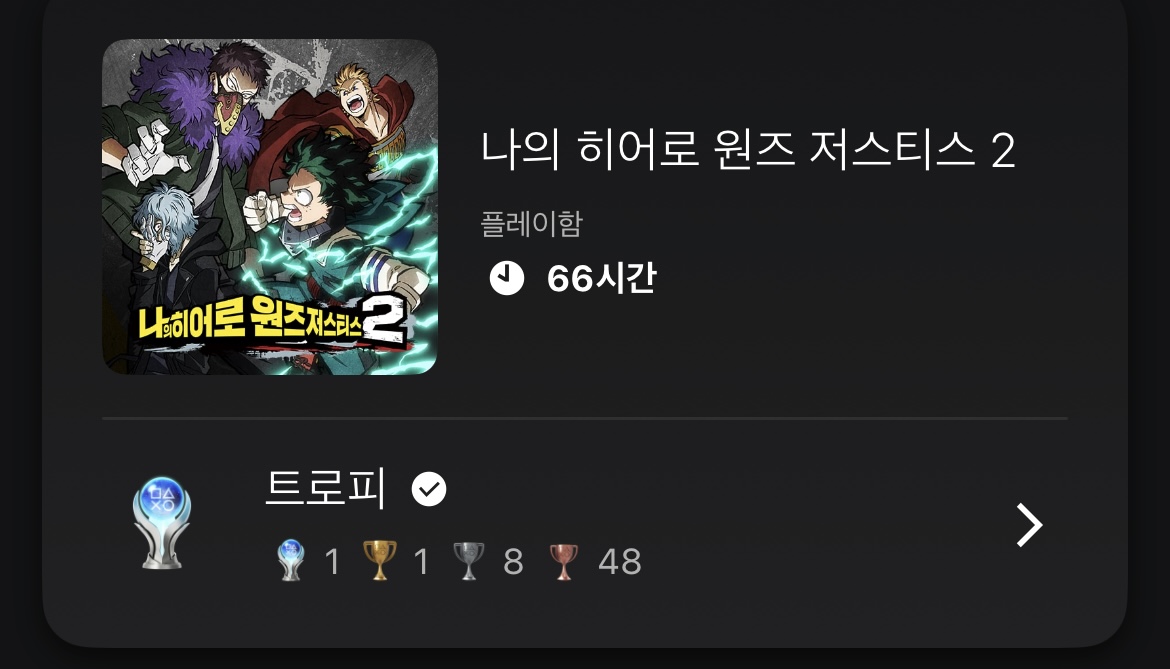 (88번째) 나의 히어로 원즈 저스티스2 플래티넘 트로피 100% 성취 기록 및 리뷰 (PS4/PS5)