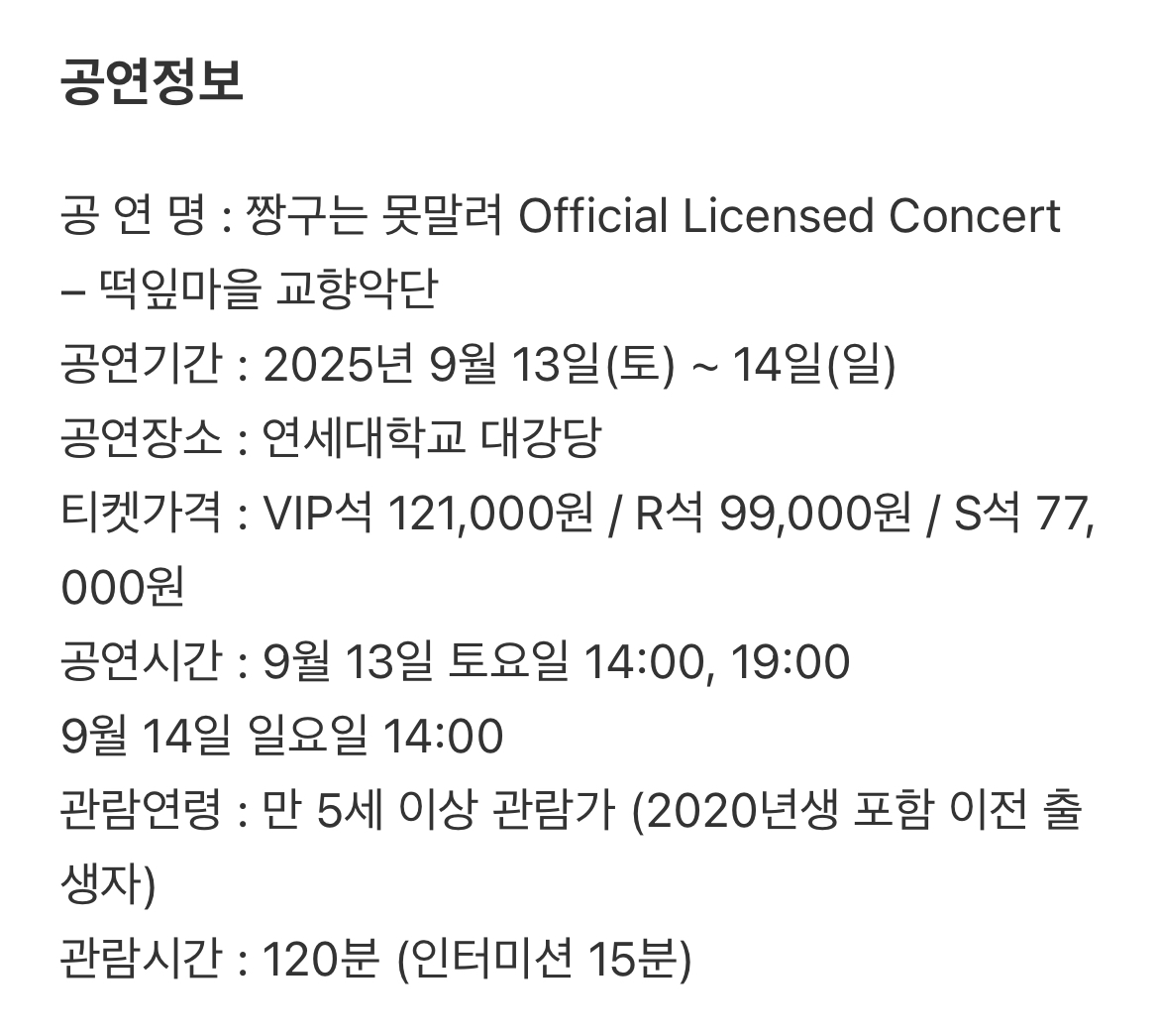 공연 사이사이 어떤 곡인지 간단히 영상에 설명이 나와서 좋았고 오프닝과 엔딩에 그래도 유명한 곡들을 배치를 해서 아! 이 노래 하는 느낌에 즐거웠다.