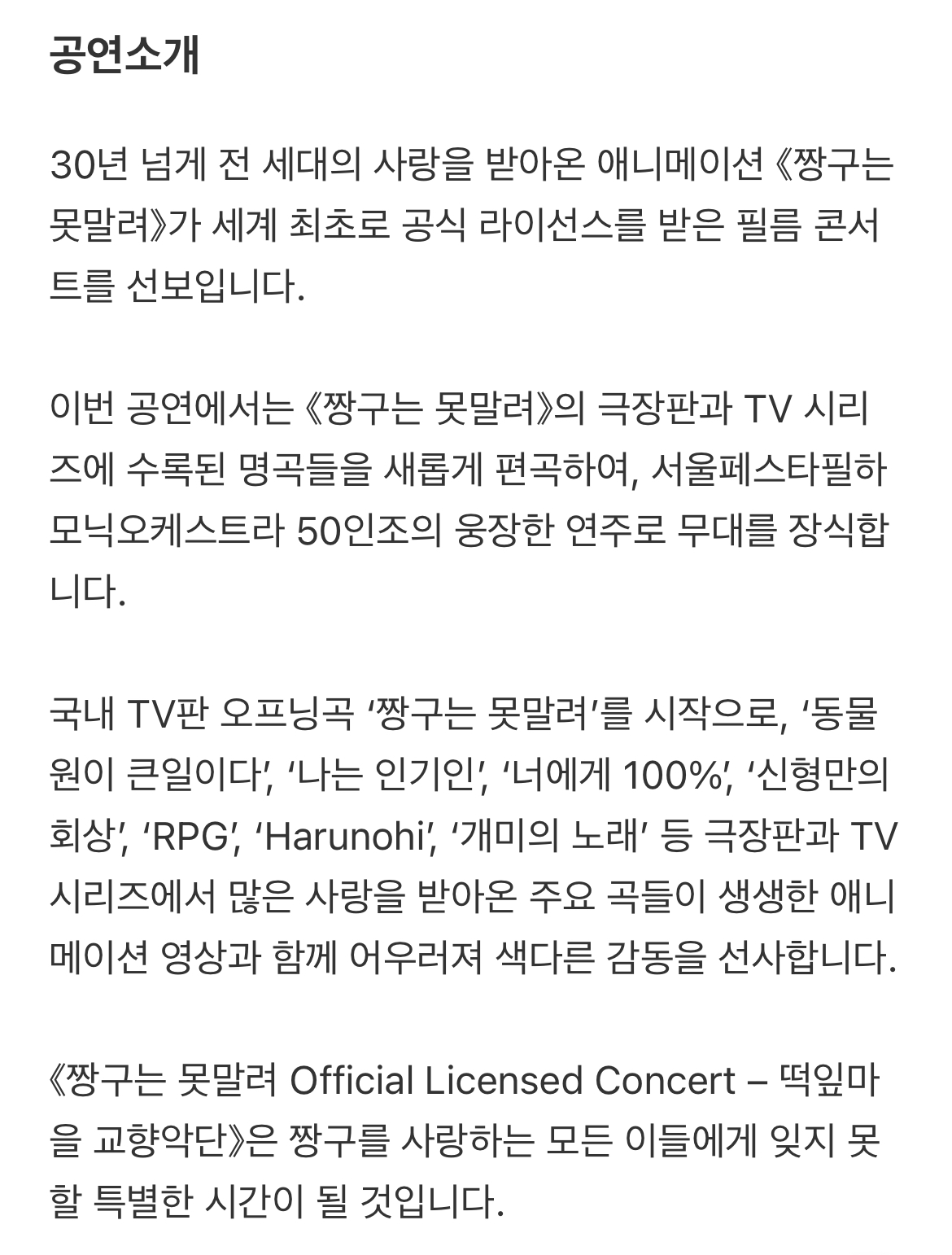 짱구는 못말려 콘서트 <떡잎마을 교향악단> 관람 후기