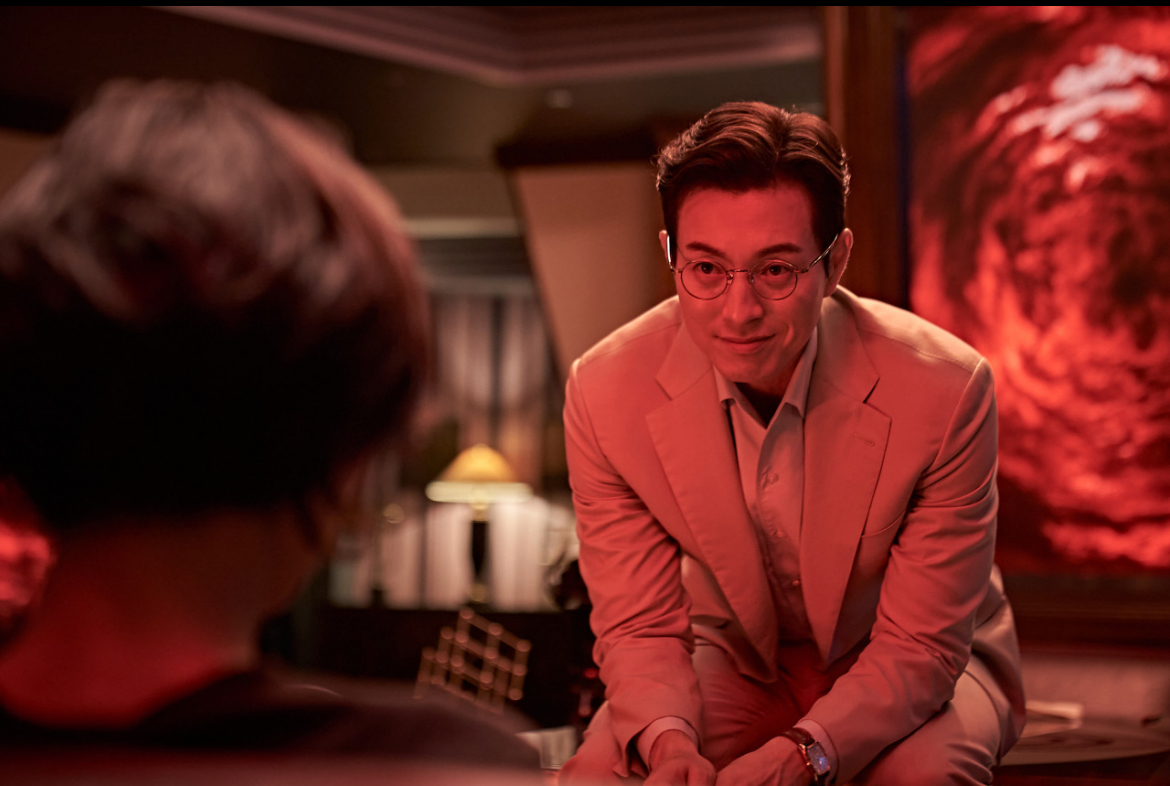 정성일은 연쇄살인범이라 주장하는 정신과 의사 역할에서 소름 돋는 연기를 선보인다. 평온해 보이는 외모 뒤에 숨겨진 광기, 논리적이면서도 비틀린 사고방식을 자연스럽게 표현한다. 특히 살인 동기를 “환자의 치료 목적”이라고 설명하는 장면에서 보여주는 왜곡된 정의감은 관객들을 소름 끼치게 만든다.(젠틀한 x새끼 느낌을 참 잘하셔) 마치 체스 게임을 보는 듯한 대화에서 지적 쾌감을 선사한다.