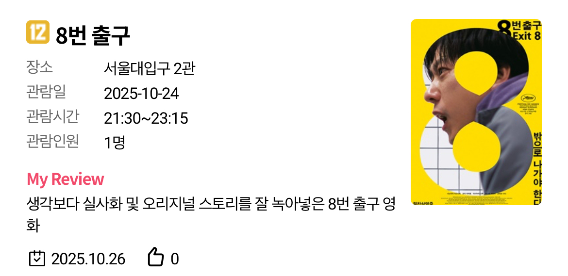 🎬 영화 리뷰 《8번 출구》: 게임에서 스크린으로, 리미널 스페이스의 공포가 현실이 되다 (한줄평, 평점, 후기, 쿠키, 예고편)