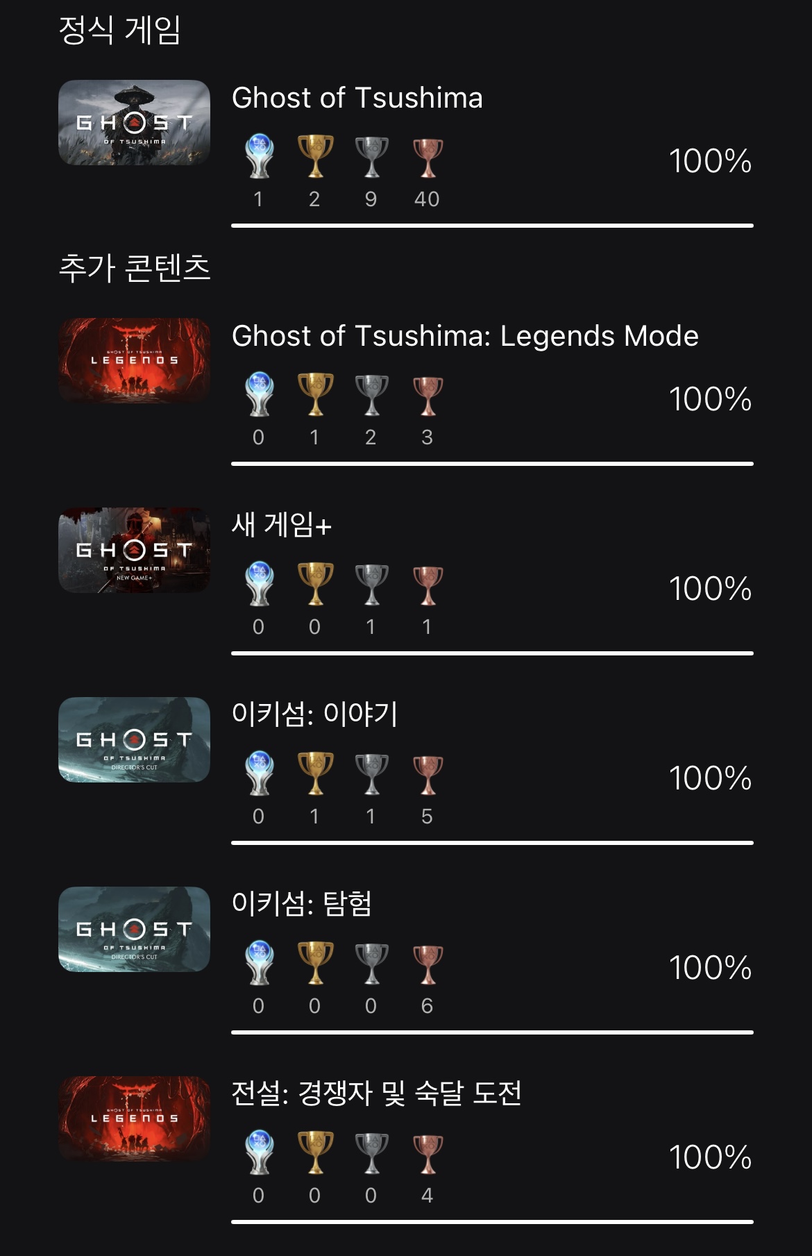 (93번째) 고스트 오브 쓰시마[Ghost of Tsushima] 플래티넘 트로피 100% 성취 기록 및 리뷰 (PS4/PS5)