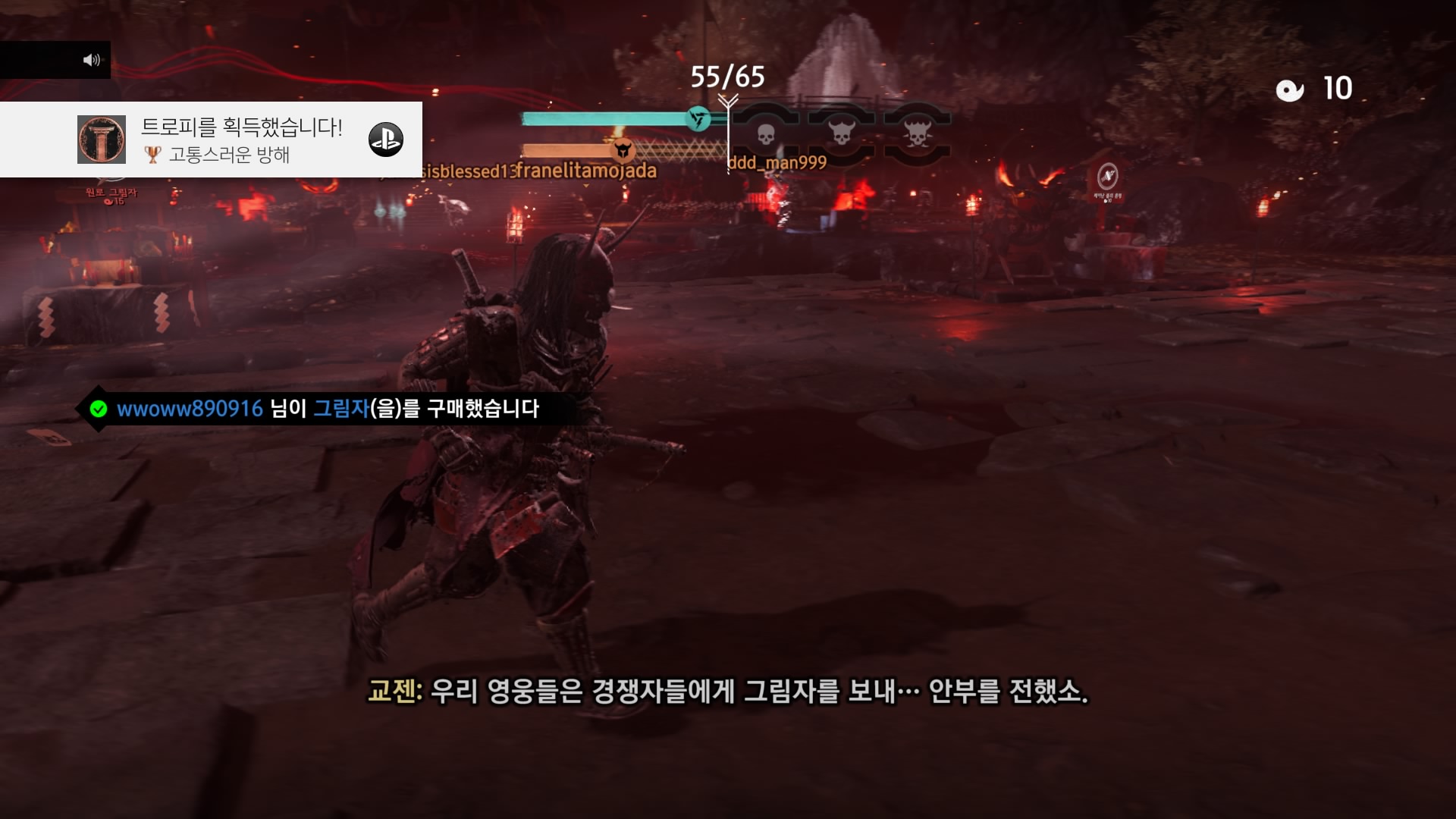 고통스러운 방해: 한 번을 경쟁자 매치에서 그림자 5명 소환. 그림자 소환은 안어렵다. 경쟁자를 할 4명을 모으는게 더 어렵다…