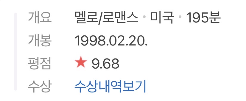 “알고 봐도 빠져들지만, 이제 내용이 너무 유명해서 아쉬운 비극적 러브스토리”