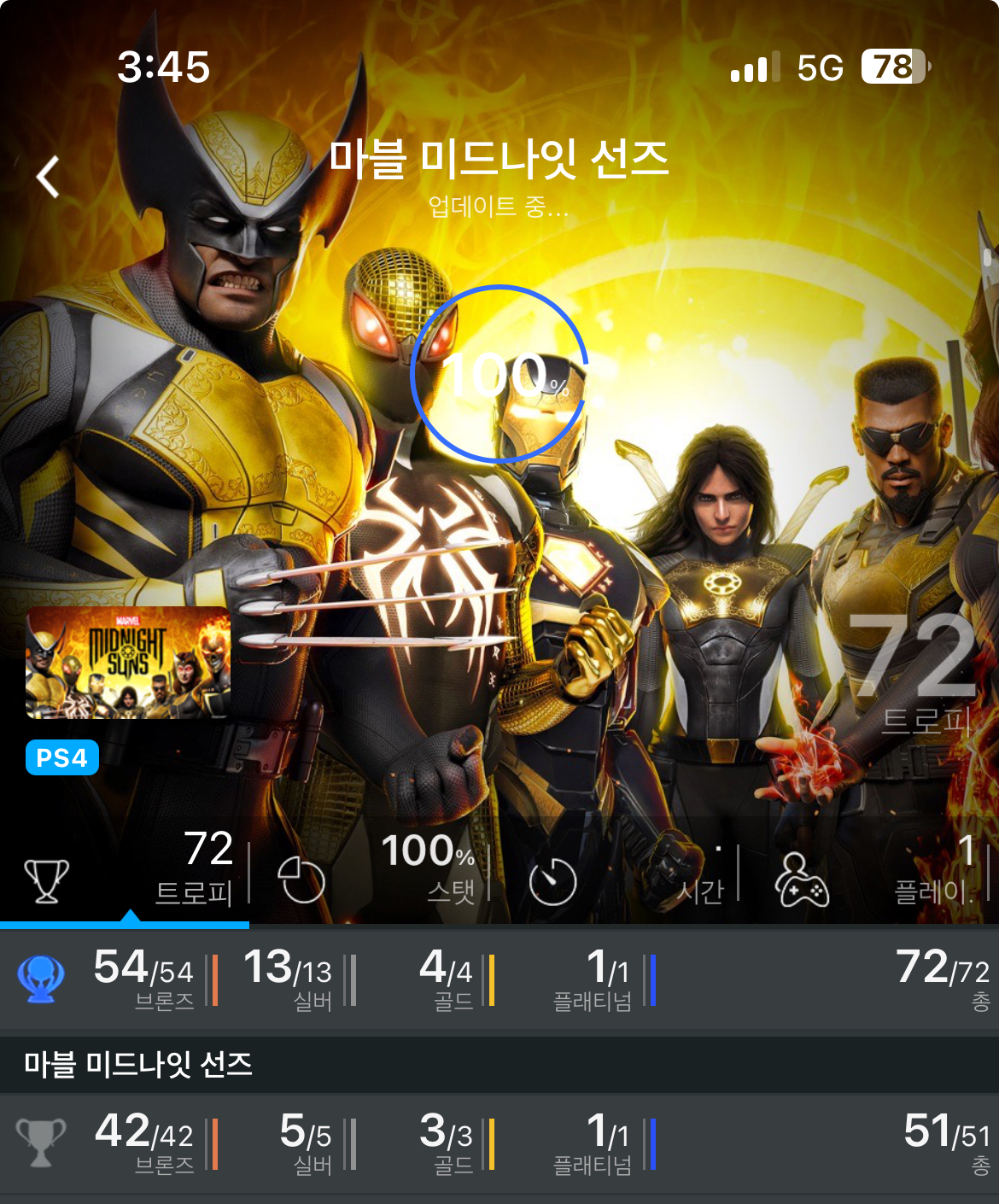 (87번째) 마블 미드나잇 선즈 플래티넘 트로피 100% 성취 기록 및 리뷰 (PS4/PS5)
